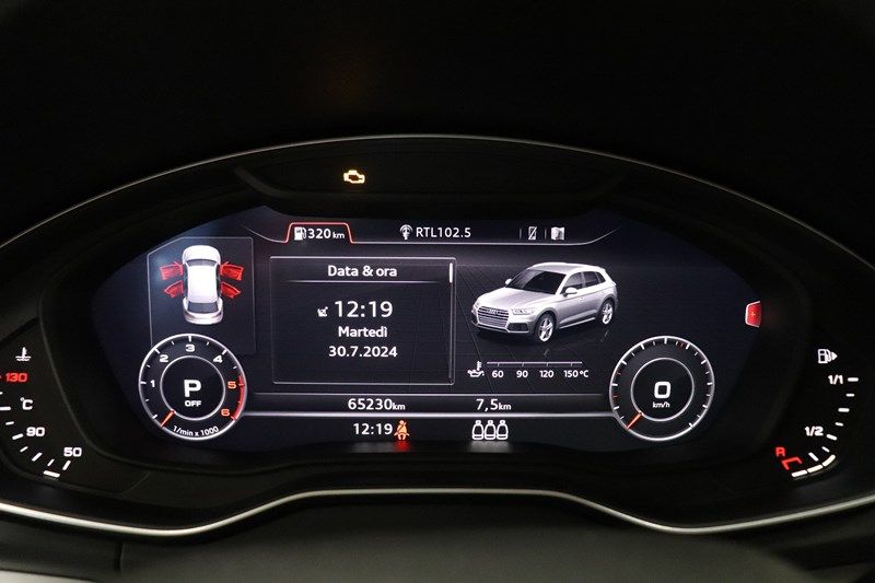 ABS, EBV (Ripartitore elettronico della forza frenante) , Airbag fullsize per conducente e passeggero , Airbag laterali anteriori testa/torace , Airbag laterali per la testa , Alette parasole, con specch. cortesia conducente e passeggero , Alzacristalli elettrici anteriori e posteriori con chiusura comfort , Appoggiatesta regolabili , ASR: Dispositivo di controllo della trazione [1AH] , Assistenza alla partenza in salita [UH2] , Audi drive select , Audi pre sense , Autoradio MMI Navigation Plus 10” touchscreen con ingresso USB, CD/DVD, SD, Bluetooth Streaming, Apple CarPlay/Android Auto e comandi al volante , Barre al tetto cromate , Blind Spot: monitoraggio angolo cieco , Bracciolo anteriore e posteriore , Break assist: assistenza suggerimento pausa , Cambio automatico e sequenziale con paddles al volante , Cerchi in lega da 17" , Chiusura centralizzata , Chiusure di sicurezza per bambini [PVT] , Climatizzatore automatico , Computer di bordo , Cruise control , EDS (Dispositivo antislittamento in partenza) [1AH] , Emergency call & Service call Audi connect , ESC: Sistema elettronico di controllo della stabilizzazione , Filtro anti particolato , Filtro antipolline , Freno di stazionamento , Hill Descent control , Immobilizzatore elettronico , Indicatori di direzione posteriori dinamici , Indicatore temperatura esterna [9Q1] , Keyless Go: Accensione senza chiave , Lunotto termico , PDC: sensori di parcheggio anteriori e posteriori , Portellone posteriore elettronico , Pretensionatore cinture di sicurezza anteriori , Proiettori a LED Audi Matrix con gruppi ottici posteriori a LED , Retrovisori ripiegabili elettricamente , Retrovisori esterni regolabili, ripiegabili e riscaldabili elettricamente con indicatori di direzione integrati , Rivestimenti dei sedili in pelle , Sedile posteriore con schienale divisibile e ribaltabile [3NM] , Sedili anteriori riscaldabili elettricamente e regolabili in altezza e profondit� , Sensore luci e pioggia , Servosterzo elettromeccanico , Sistema di ancoraggio ISOFIX e 3� punto di ancoraggio Top Tether sui sedili posteriori laterali , Sistema di controllo pressione pneumatici [7K1] , Sistema Start&Stop , Tergilunotto , Vano bagagli con illuminazione LED , Volante multifunzionale in pelle a 3 razze regolabile in altezza e profondit� , Audi Virtual Cockpit , Cristalli posteriori oscurati , Serbatoio aggiuntivo AdBlue , Kit Fix&Go.