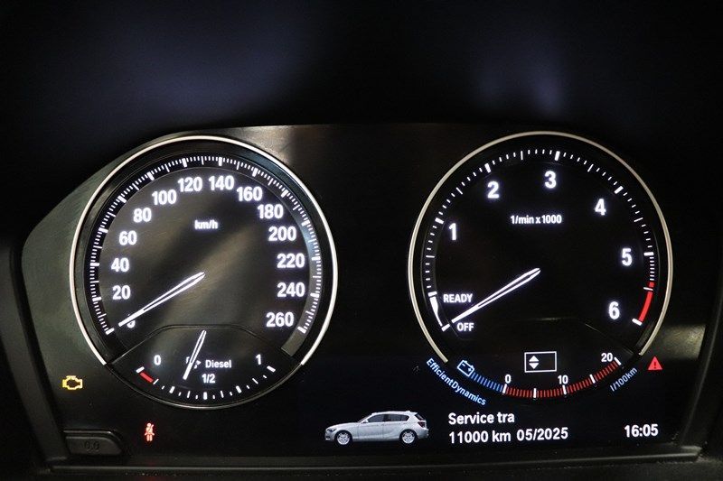 ABS , Airbag guida , Airbag laterali per guidatore e passeggero , Airbag laterali per la testa anteriori e posteriori , Airbag passeggero , Autoradio 6.5” con ingresso USB, Bluetooth streaming e comandi al volante , Bluetooth , BMW Connected Drive Services [6AK] , BMW Intelligent Emergency Call [6AF] , BMW TeleServices [6AE] , Bracciolo anteriore [473] , Calandra a doppio rene con cornice cromata e listelli verticali nero opaco , Cambio manuale a 6 rapporti , Cerchi in lega da 16" , Chiave con transponder , Chiusura centralizzata per portiere, cofano bagagliaio e sportello del serbatoio , Cinture di sicurezza a 3 punti con pretensionatore e limitatore di carico per passeggeri anteriori , Climatizzatore automatico monozona [530] , Computer di bordo , Connected Package Professional [6C4] , Controllo dinamico di stabilit� DSC con ABS e controllo di trazione DTC , Correttore assetto fari , Cruise Control con funzione freno [544] , Disattivazione airbag passeggero [5DA] , Fari anteriori Bi-LED con anelli luminosi LED , Fendinebbia , Filtro antiparticolato DPF , Fissaggio Isofix per sedili posteriori laterali , Gruppi ottici posteriori con tecnologia LED , Immobilizzatore , Indicatore pressione pneumatici [2VB] , Indicatore temperatura esterna , Keyless Go: accensione senza chiave , Luci vano bagagli , Navigatore Satellitare , Park Distance Control (PDC): sensori di parcheggio anteriori e posteriori [508] , Poggiatesta anteriori e posteriori regolabili , Retrovisore interno autoanabbagliante [431] , Rivestimenti in tessuto , Sedili anteriori regolabili manualmente , Sedili posteriori abbattibili (60:40) , Sensore luci e pioggia [521] , Selettore feeling di guida con 3 modalit� differenti (Eco Pro/Comfort/Sport) , Servotronic [216] , Sistema di Start/Stop automatico con tasto di disinserimento , Specchietti retrovisori regolabili e riscaldabili elettricamente con indicatori di direzione integrati , Tergilunotto , Vetri elettrici anteriori e posteriori , Volante in pelle multifunzione regolabile in altezza e profondit� [240] , Serbatoio aggiuntivo AdBlue , Kit Fix&Go.