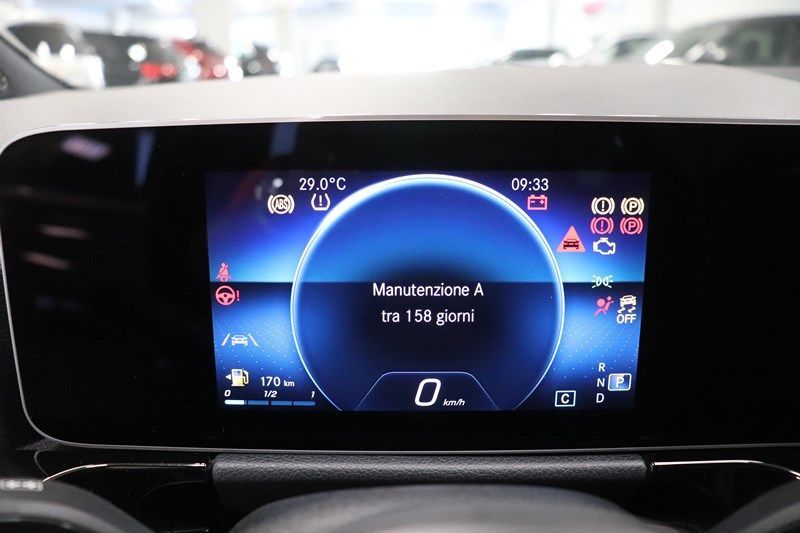 ABS , Airbag guida , Airbag passeggero , Alette parasole con deflettore estendibile [543] , Appoggiatesta posteriori , Assetto comfort [485] , ATTENTION ASSIST (sist.di protez. da stanchezza e colpi di sonno) , Autoradio touchscreen 10” con ingresso USB-c, Bluetooth Streaming e comandi al volante , Bluetooth , Bracciolo posteriore estraibile con portabevande [400] , Cambio automatico e sequenziale con paddles al volante , Cerchi in lega da 17" , Chiamata d'emergenza Mercedes-Benz (sistema di chiamata autom. , non necessita tel. cellulare) [351] , Chiave con transponder , Chiusura centralizzata , Climatizzatore automatico monozona, funzione di ricircolo, filtro per polveri sottili [580] , Controllo elettronico della stabilit� , Controllo elettronico della trazione , Correttore assetto fari , Cruise control [440] , Disattivazione automatica airbag lato passeggero [U10] , Fari anteriori alogeni con luci diurne LED , Filtro anti particolato , Funzione ECO Start/Stop con tasto di disinserimento , Freno di stazionamento elettronico , Illuminazione vano bagagli , Immobilizzatore , Indicatore temperatura esterna , Lane Assist , Navigatore Satellitare , Park Assist: sensori anteriori e posteriori con possibilit� di parcheggio autonomo , Portellone vano bagagli EASY PACK con comando elettrico di apertura e chiusura [890] , Retrovisori esterni regolabili, ripiegabili e riscaldabili con indicatori di direzione integrati e luci di benvenuto , Rivestimenti in ARTICO/tessuto Bertix nero , Schienali dei sedili posteriori ripiegabili 40/20/40 , Sedili anteriori regolabili manualmente con supporto lombare regolabile , Selettore DYNAMIC SELECT con 4 programmi di marcia [B59] , Sensore luci e pioggia , Sidebag per lato guida e passeggero anteriore (airbag combinato per il torace/bacino) , Sistema anticollisione attivo , Sistema di controllo della pressione pneumatici [475] , Sistema Visualizzazione semaforo all’arresto su striscia , Soglie d’ingresso in alluminio Mercedes Benz , Telecamera posteriore per la retromarcia assistita [218] , Tergilunotto , Vano portaoggetti nella consolle centrale con avvolgibile [73B] , Vetri elettrici anteriori e posteriori , Volante multifunzione in pelle regolabile in altezza e profondit� , Cristalli posteriori oscurati , Serbatoio aggiuntivo AdBlue , Kit Fix&Go.
