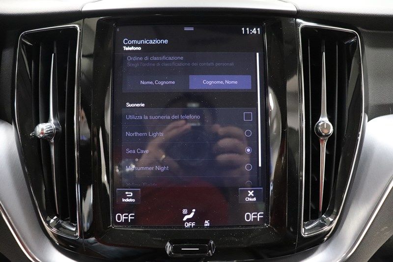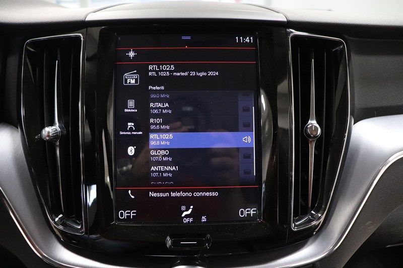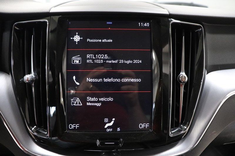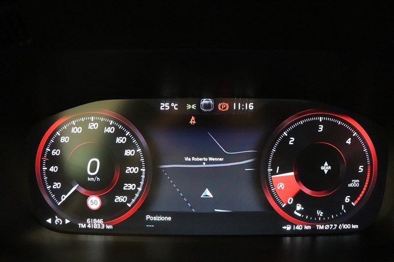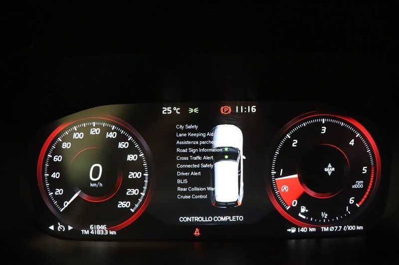 Airbag full size lato guida e passeggero , Airbag per le ginocchia lato guida , Alzacristalli elettrici anteriori e posteriori , Autoradio touchscreen 9” con ingresso USB, Bluetooth streaming, Apple CarPlay/Android Auto e comandi al volante , Barre al tetto cromate , Blind Spot: monitoraggio angolo cieco , Bracciolo centrale anteriore con vano portaoggetti , Bracciolo centrale posteriore con portabicchieri , Cambio manuale a 6 rapporti , Cerchi in lega da 18" , Chiave attivazione/disattivazione airbag lato passeggero , Chiave con transponder , City Safety (Sistema diurno e notturno anti-collisione con attivazione automatica della frenata) , Climatizzatore automatico bi-zona con "Clean Zone" , Computer di bordo con termometro temperatura esterna , Correttore assetto fari , Cross Traffic Alert , Cruise control , Dispositivo Start/Stop , Doppio terminale di scarico cromato , Driver Alert Control , Drive Mode (possibilit� di scegliere fra diverse modalit� di guida) , EBL: Emergency Brake Lights , ESC , Fari anteriori a LED con luci diurne LED "Thor Hammer" e funzione abbaglianti automatici , Filtro anti particolato , Freno di stazionamento elettronico con funzione AutoHold , Hill Start Assist: (ausilio alla partenza in salita) , IDIS (Intelligent Driver Information System) , Immobilizzatore elettronico , ISO-fix , Navigatore satellitare , Keyless Go: accensione senza chiave , Lane Assist , PDC: sensori di parcheggio anteriori e posteriori , Portellone posteriore ad apertura e chiusura elettronica , Post Impact Breaking (frenata automatica) e sblocco portiere in caso di collisione , Quadro strumenti digitale da 12,3" (Cockpit) , Rivestimenti in pelle , Road Sign Information , Roll Stability Control (sistema elettronico antiribaltamento) , Schienali dei sedili posteriori abbattibili (60/40) , Sedili anteriori regolabili manualmente in profondit�, in altezza e supporto lombare a regolazione elettronica , Sensore luci e pioggia , Servosterzo progressivo in funzione della velocit� , SIPS: Side Impact Protection System con airbag laterali nei sedili anteriori , Sistema elettronico della stabilit� , Specchi retrovisori esterni ed interno con sistema elettrico antiabbagliamento , Specchi retrovisori esterni regolabili, ripiegabili e riscaldabili elettricamente con indicatori di direzione integrati , Tergilunotto , TPMS: Sistema di monitoraggio della pressione degli pneumatici , TRACS: Controllo elettronico della trazione , Volante multifunzione in pelle a 3 razze regolabile in altezza e profondit� , Volvo On Call , WHIPS (Whiplash Protection System) , Cristalli posteriori oscurati , Telecamera 360� , Serbatoio aggiuntivo AdBlue , Kit Fix&Go.